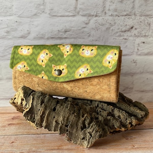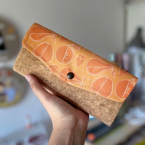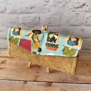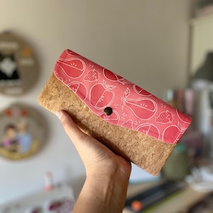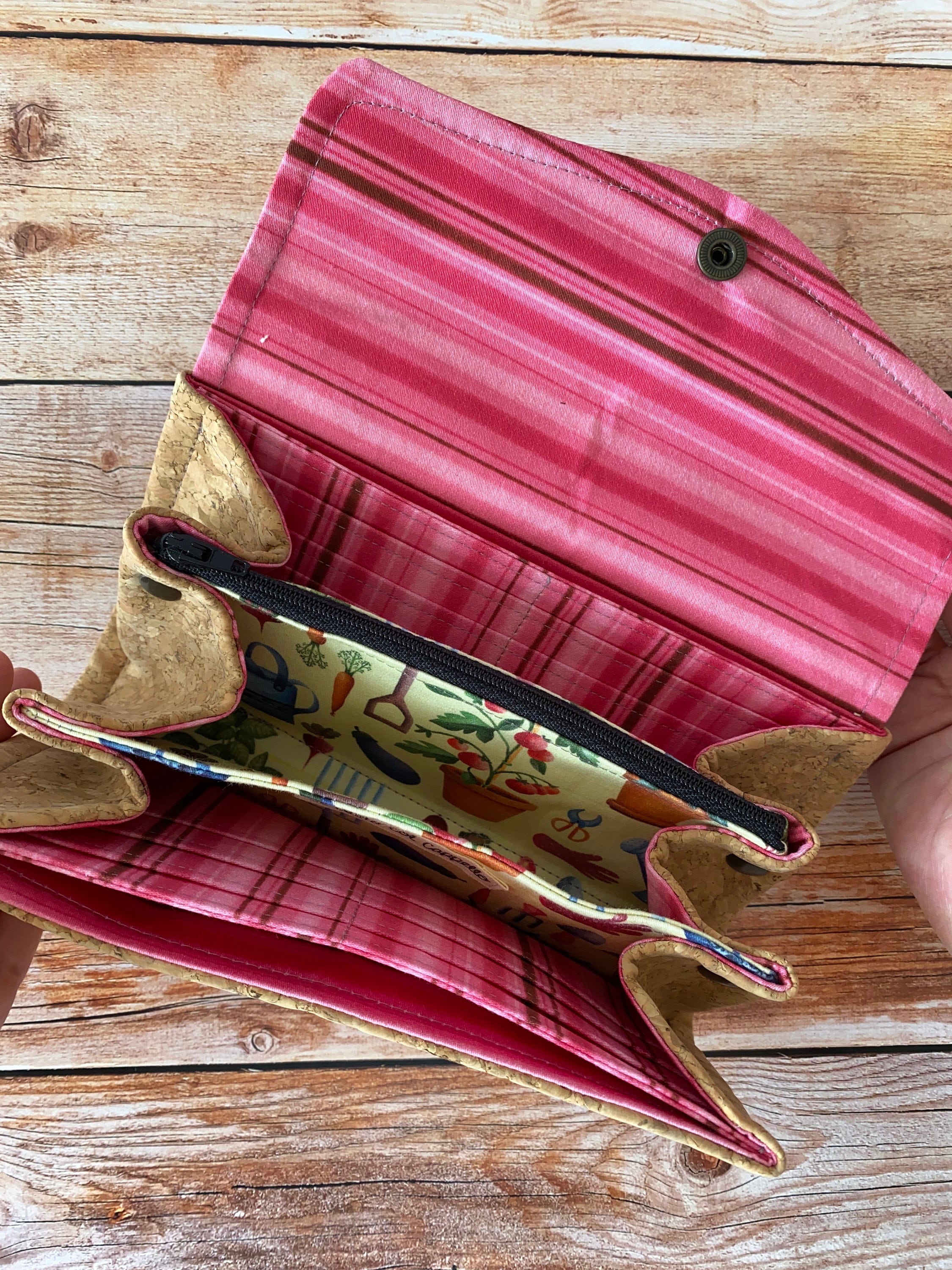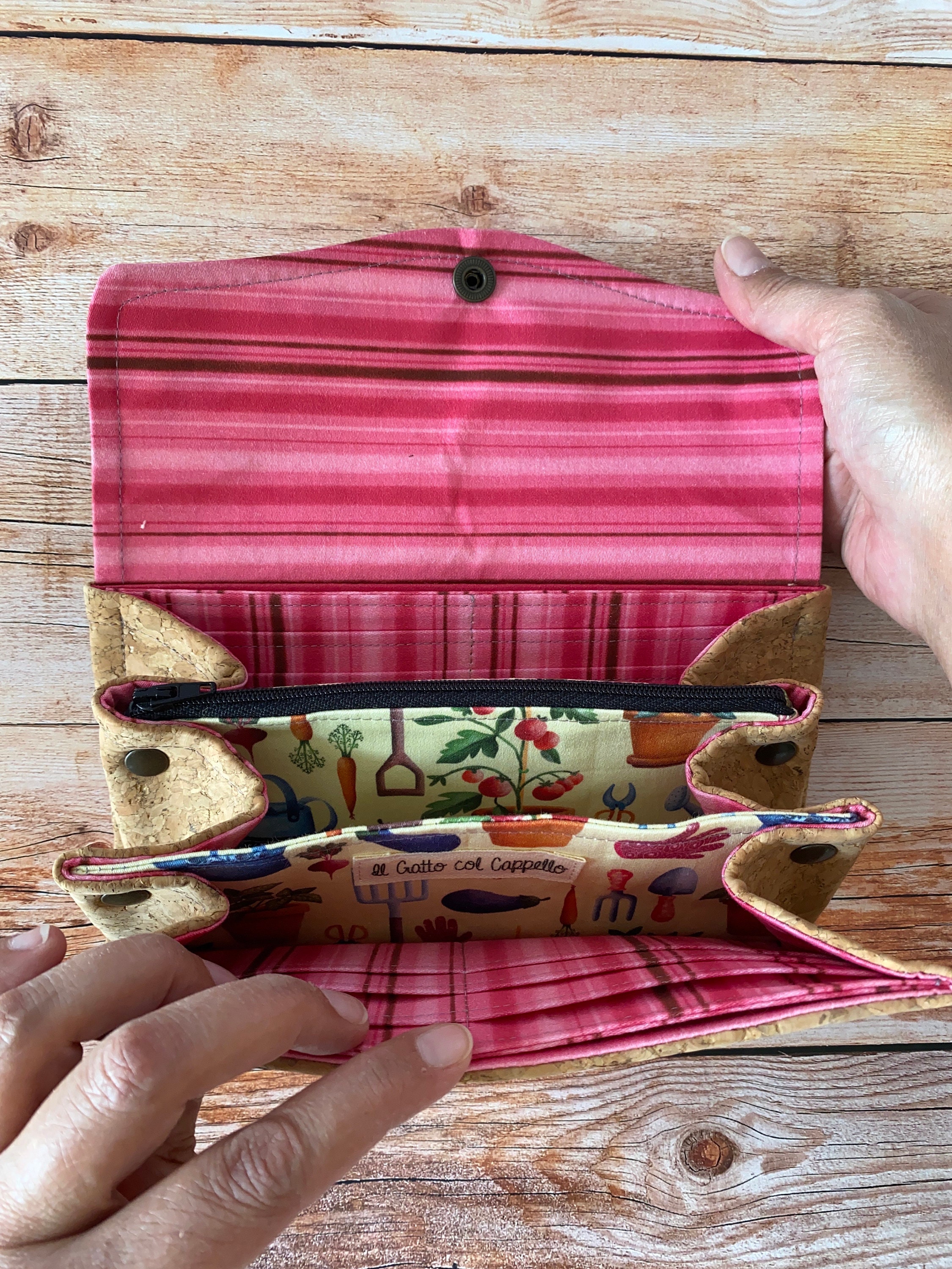 Portafogli grande in sughero e raso di cotone, stampa giardinaggio